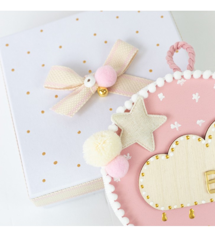Ξύλινο κρεμαστό Γούρι για κορίτσι με θέμα Pink Rain