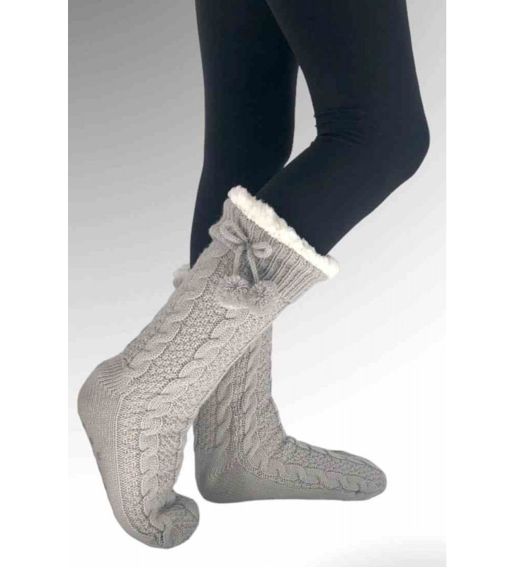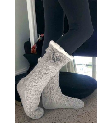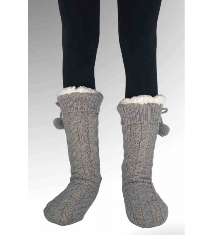 Γυναικείες καλτσοπαντόφλες με ABS εσωτερική ζεστή μαλακή επένδυση πομ-πομ & σχέδιο πλεξούδες!