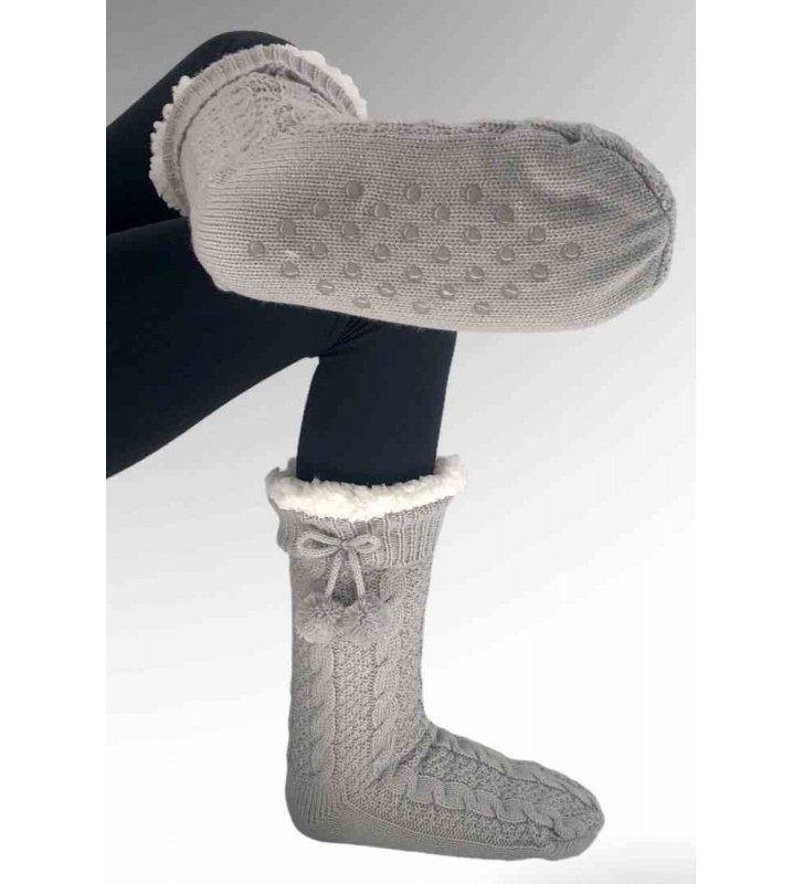 Γυναικείες καλτσοπαντόφλες μπότα fleece με ABS εσωτερική ζεστή μαλακή επένδυση & φιόγκο!
