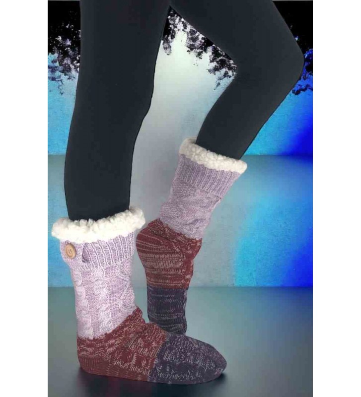 Γυναικείες καλτσοπαντόφλες μπότα fleece με ABS εσωτερική ζεστή μαλακή επένδυση & φιόγκο!
