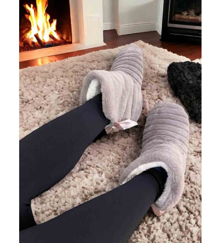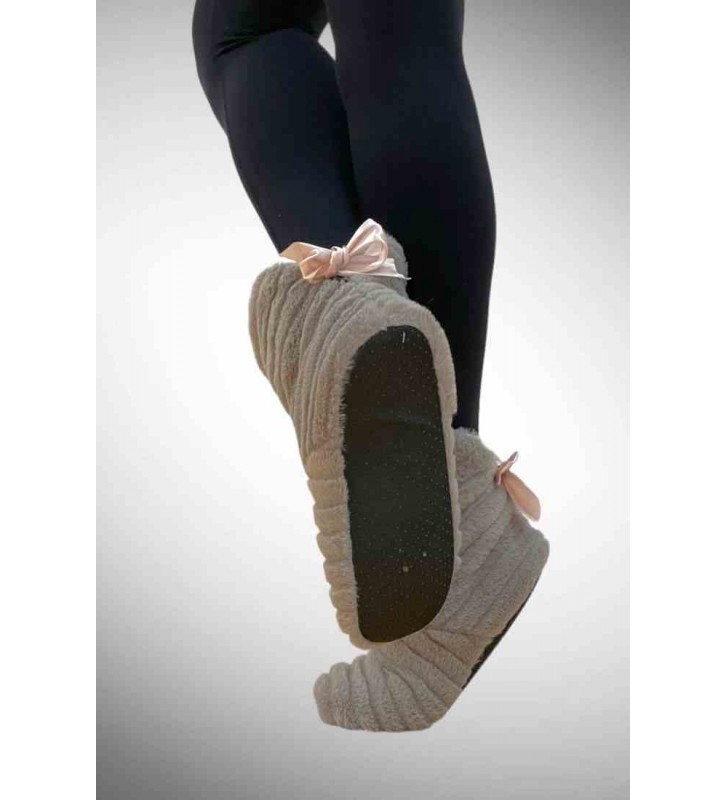 Γυναικείες καλτσοπαντόφλες μπότα fleece με ABS εσωτερική ζεστή μαλακή επένδυση & φιόγκο!