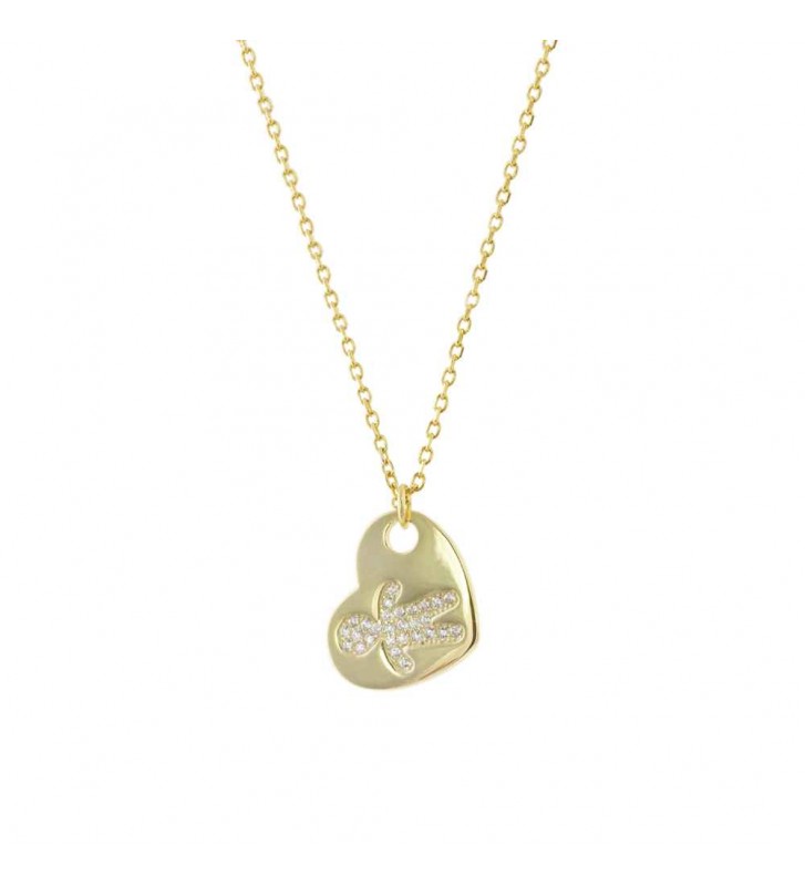01L05-01572 Loisir Κολιέ The Minis ασημένιο επίχρυσο με στοιχείο αγόρι, καρδιά και λευκά ζιργκόν