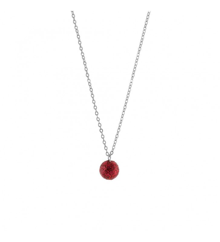 Loisir Κολιέ Fireball με Ατσάλινη Αλυσίδα & Μεταλλικό Στοιχείο με Κόκκινο Glitter
