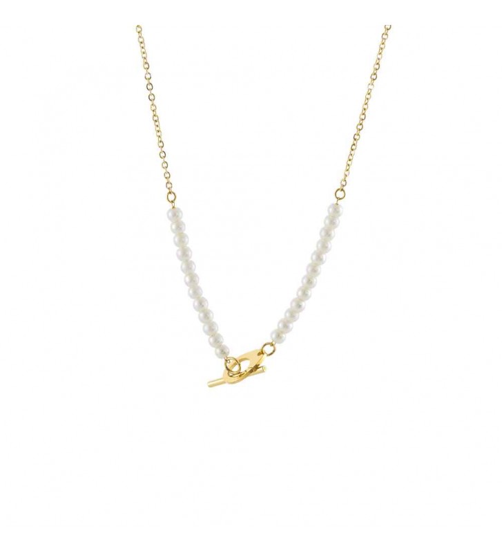 01L27-00858 Loisir Κολιέ Tiny ατσάλινο επίχρυσο με λευκές πέρλες και στοιχείο