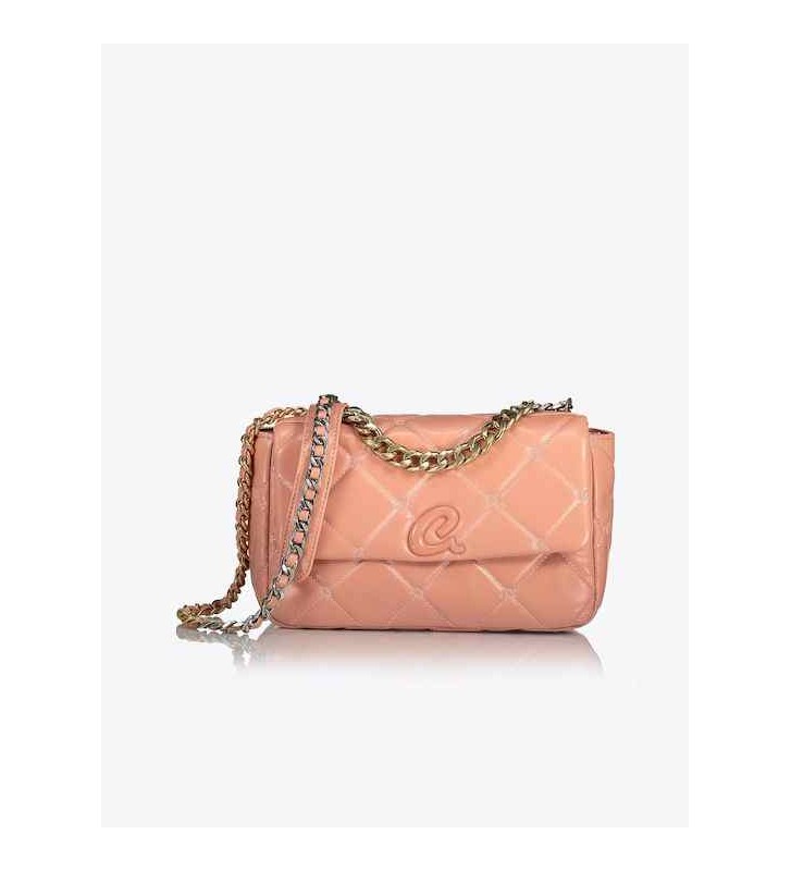 Γυναικεία τσάντα χιαστί από συνθετικό δέρμα. Είναι επενδυμένη με φόδρα και περιέχει εσωτερικές θήκες. Το ρυθμιζόμενο - αποσπώμενο λουράκι κάνει το κράτημα της πιο εύκολο. Διαθέτει πίσω τσέπη και μποστά θήκη που κλείνει με μαγνητικό κούμπωμα. Ασφαλίζεται με φερμουάρ.