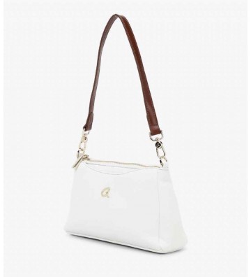 Γυναικεία τσάντα ώμου με μεταλλιζέ όψη, σε κυλινδρικό σχήμα, από υψηλής ποιότητας συνθετικό δέρμα. Έχει διακοσμητική αλυσίδα με μοτίφ logo ‘a’ και αποσπώμενο λουράκι για να φοριέται και χιαστί. Με εσωτερική φόδρα και τσέπη που κλείνει. Κλείσιμο με φεμουάρ.