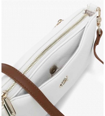 Γυναικεία τσάντα χιαστί από συνθετικό δέρμα. Είναι επενδυμένη με φόδρα και περιέχει εσωτερικές θήκες. Το ρυθμιζόμενο - αποσπώμενο λουράκι κάνει το κράτημα της πιο εύκολο. Διαθέτει πίσω τσέπη και μποστά θήκη που κλείνει με μαγνητικό κούμπωμα. Ασφαλίζεται με φερμουάρ.