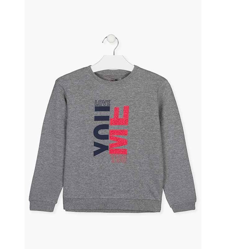 Μπλουζάκι για κορίτσι. Φούτερ με στρογγυλή λαιμόκοψη και λαμπερή εκτύπωση.