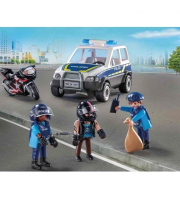 Ετοιμαστείτε για την απόλυτη καταδίωξη με το PLAYMOBIL Action Heroes! Η αδρεναλίνη ανεβαίνει καθώς οι μικροί μας φίλοι αναλαμβάνουν τον ρόλο του ατρόμητου αστυνομικού που προσπαθεί να σταματήσει έναν γρήγορο ληστή. Πρόκειται για ένα παιχνίδι που μετατρέπει κάθε δωμάτιο σε ένα πεδίο δράσης γεμάτο φαντασία και δημιουργικότητα, προσφέροντας ατελείωτες ώρες χαράς και περιπέτειας.