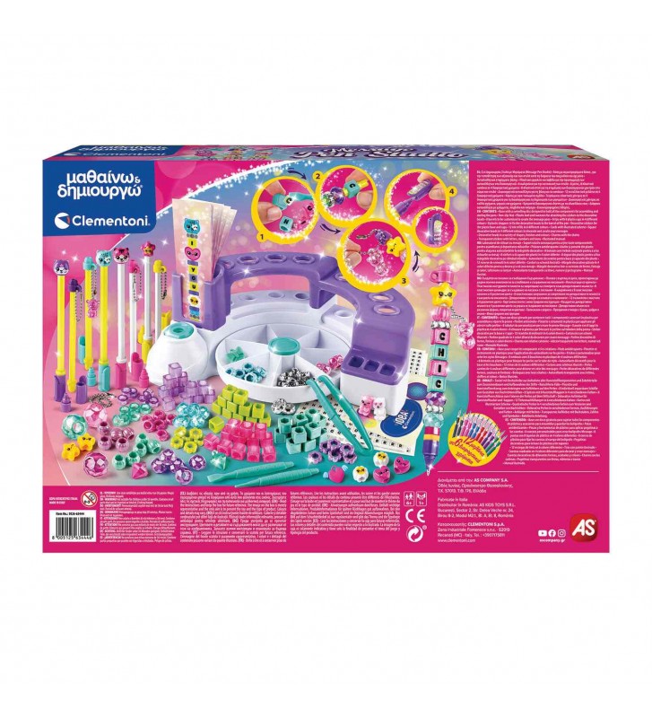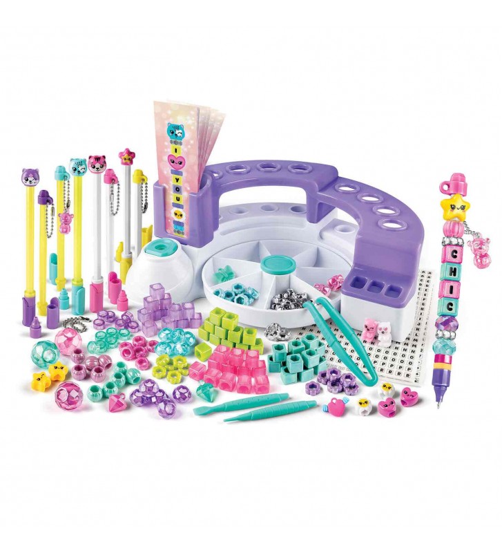 Ένα studio που τα στυλό που φτιάχνεις έχουν τα δικά σου μηνύματα! Το Message Pen Studio είναι ένα πρωτότυπο δημιουργικό studio που δίνει στα παιδιά τη δυνατότητα να σχεδιάζουν και να δημιουργούν μοναδικά στυλό με προσωπικά μηνύματα. Με γράμματα στα ελληνικά και αγγλικά, αμέτρητα αξεσουάρ και έξυπνα εργαλεία, η δημιουργία δεν έχει όρια! Το σετ περιλαμβάνει πάνω από 100 αξεσουάρ, δημιουργική βάση εργασίας και 8 μελάνια σε διαφορετικά χρώματα, ώστε κάθε στυλό να είναι διαφορετικό. Τα στυλό μπορούν να φτιαχτούν ξανά και ξανά, αλλάζοντας μήνυμα και διακόσμηση κάθε φορά. Με το ειδικό εργαλείο αντιγραφής μηνυμάτων και τις προτεινόμενες κάρτες που μπορούν να τοποθετηθούν στη θέση στήριξης, το αποτέλεσμα είναι πάντα τέλειο και εύκολο. Τα παιδιά μπορούν να δημιουργήσουν έως 8 προσωποποιημένα στυλό, με λαστιχένια ή μεταλλικά διακοσμητικά. Ξεχωριστό χαρακτηριστικό αποτελεί το καπάκι του στυλό, που διαθέτει ειδική θέση για αυτοκόλλητα με διαφορετικά εφέ και στυλ, δίνοντας ακόμα περισσότερες επιλογές εξατομίκευσης.