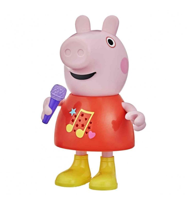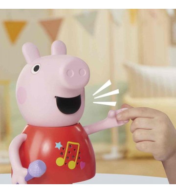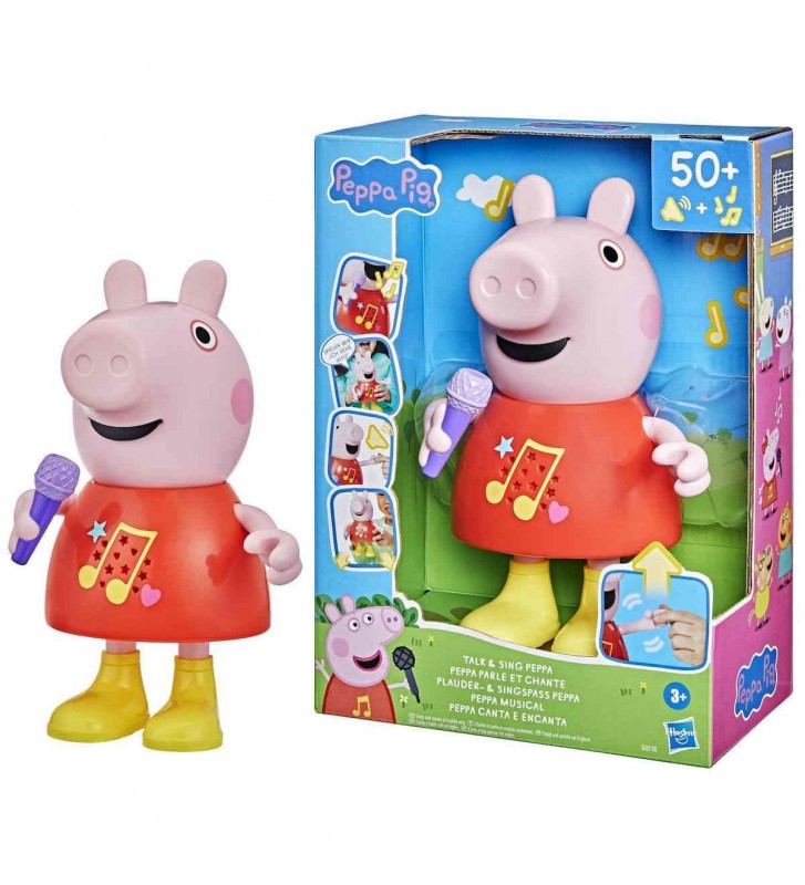 Η αγαπημένη Peppa Pig παίρνει ζωή με τη διαδραστική κούκλα Talk & Sing Peppa! Με περισσότερες από 50 φράσεις, τραγούδια και ηχητικά εφέ, προσφέρει απίθανες στιγμές διασκέδασης και μάθησης. Η Peppa μιλάει, τραγουδάει, παίζει "Βλέπω-Βλέπω" και πατάει... σε λασπόνερα! Η λειτουργία αλλάζει εύκολα μετακινώντας το μικρόφωνό της πάνω ή κάτω, ενώ η κίνησή της ενεργοποιείται σηκώνοντας το χεράκι της.