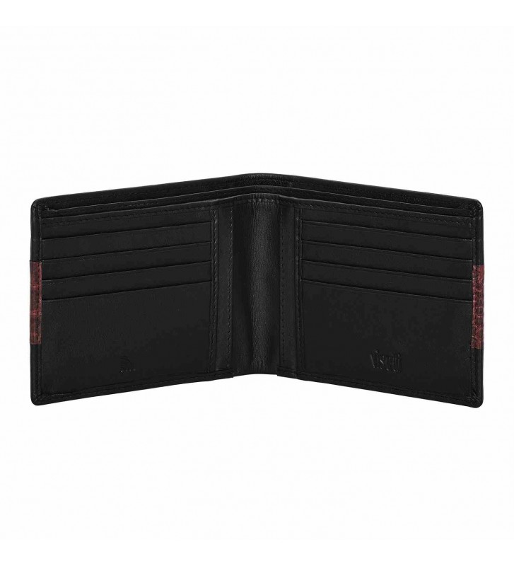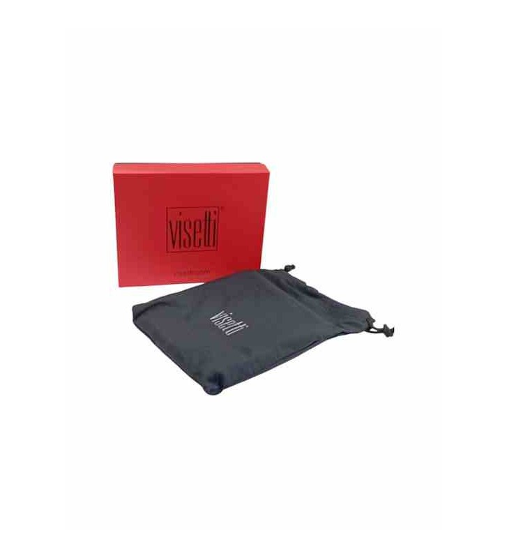 Ανδρικό πορτοφόλι της εταιρείας Visetti κατασκευασμένο από δέρμα σε μαύρο χρώμα. Διαθέτει ειδικό προστατευτικό πλέγμα (chip), το οποίο μπλοκάρει όλα τα σήματα RFID (Radio Frequency Identification), προς αποφυγή υποκλοπής προσωπικών δεδομένων και απομαγνητισμό των πιστωτικών καρτών.