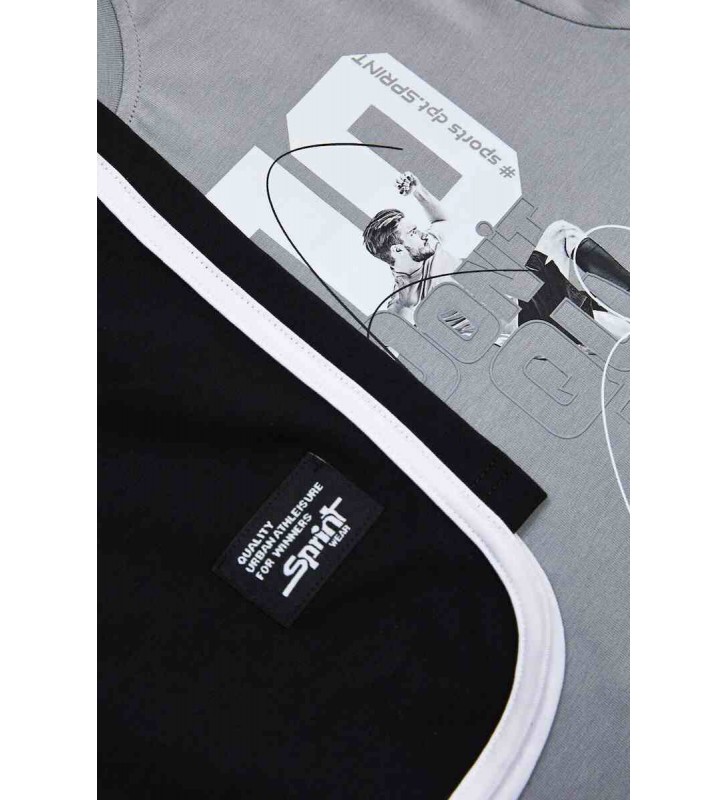 Παιδικό σετ 2 τεμαχίων. Μπλούζα με τύπωμα “Ride the Streets with Sprint” στο στήθος, στην πλάτη και στο μανίκι. Βερμούδα φούτερ με ελαστικό ζωνάρι, εσωτερικά με χρωματική αντίθεση και ρυθμιζόμενα κορδόνια, μπροστινές λοξές τσέπες και ετικέτα logo SPRINT στο κάτω μέρος.
