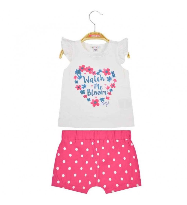 Σορτς πουά με λάστιχο στη μέση και στο τελείωμα, σε ροζ χρώμα.