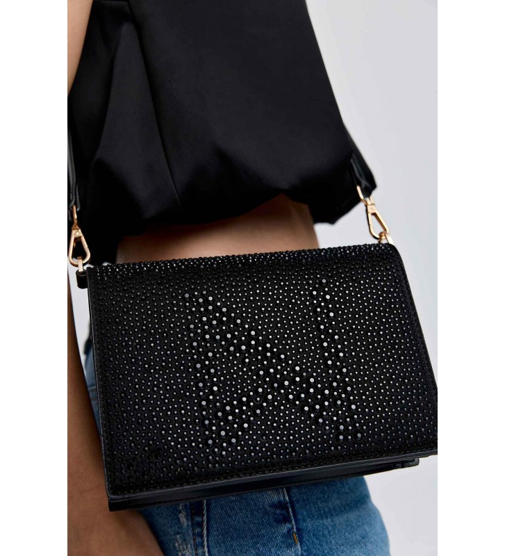 Βραδινό τσαντάκι Pieta, με ιδιαίτερη γυαλιστερή όψη. Είναι κατασκευασμένο από τεχνόδερμα υψηλής ποιότητας, με χρυσή αποσπώμενη αλυσίδα για να φορεθεί και ως χιαστί. Είναι πλαισιωμένο από μεταλλικό χρυσό πλαίσιο και κλιπ ασφαλείας. Εσωτερικά αποτελείται από μία θήκη με ύφασμα. Ένα πολύ ιδιαίτερο τσαντάκι ιδανικό για κάθε βραδινή εμφανίση.