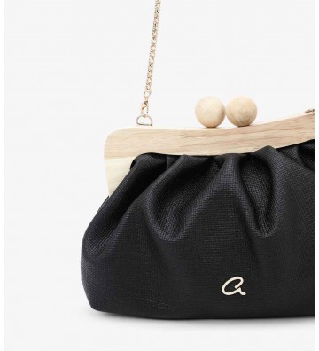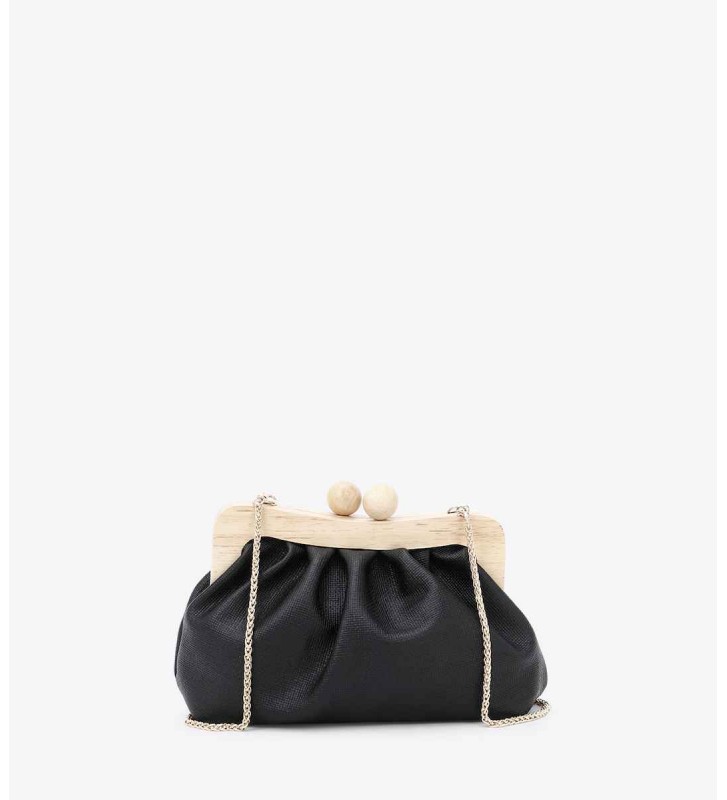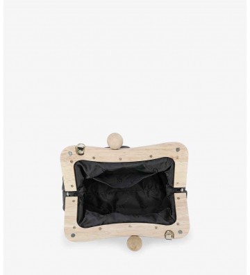Γυναικεία βραδινή τσάντα με ξύλινο περίγραμμα, κατασκευασμένη από υψηλής ποιότητας τεχνόδερμα.