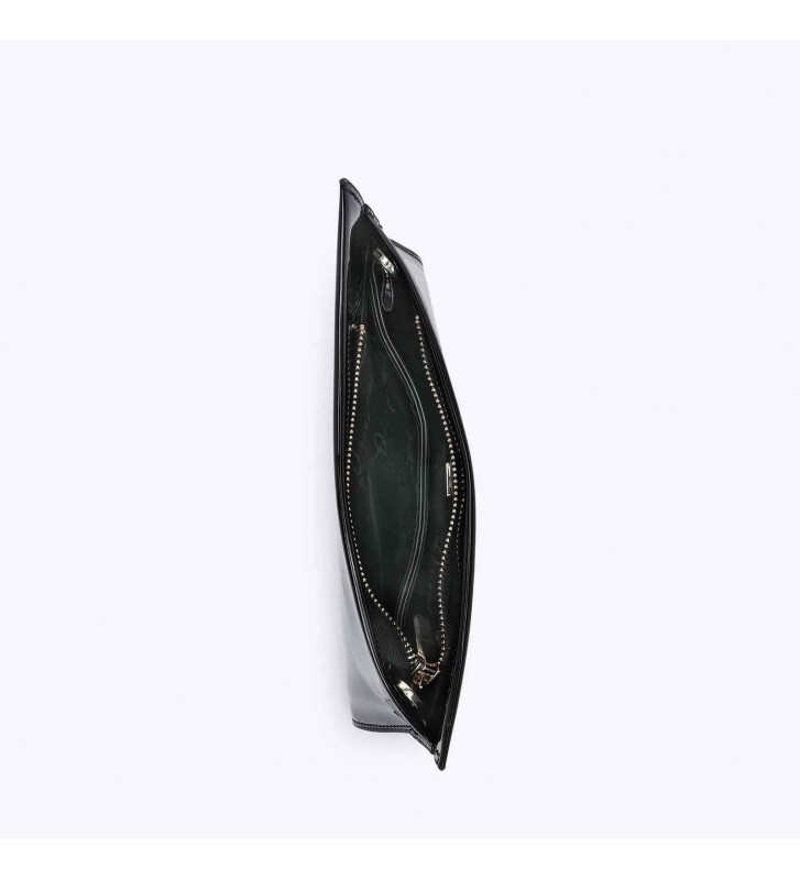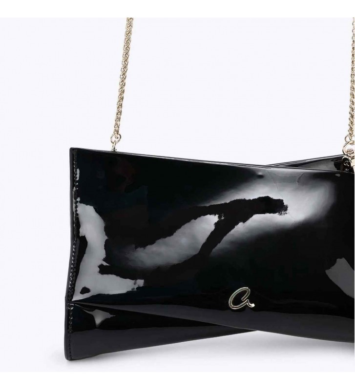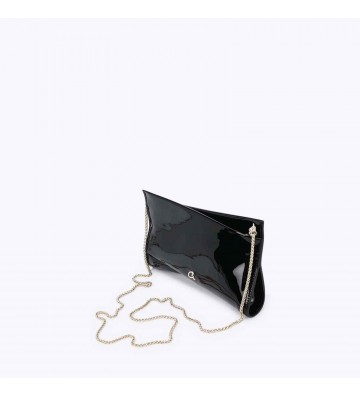Γυναικείο βραδινό τσαντάκι από glossy τεχνόδερμα. Διαθέτει αλυσίδα και κλείνει με φερμουάρ. Εσωτερικά είναι επενδυμένο με φόδρα.