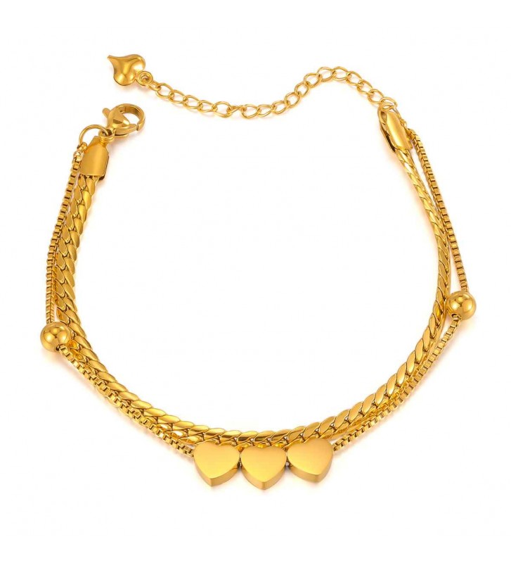 Είναι διακοσμημένο με καρδιές, προσθέτοντας μία πινελιά πολυτέλειας και γοητείας. Το συγκεκριμένο βραχιόλι ενδείκνυται για γυναίκες που επιθυμούν να αναδείξουν την κομψότητά τους με έναν ιδιαίτερο τρόπο.