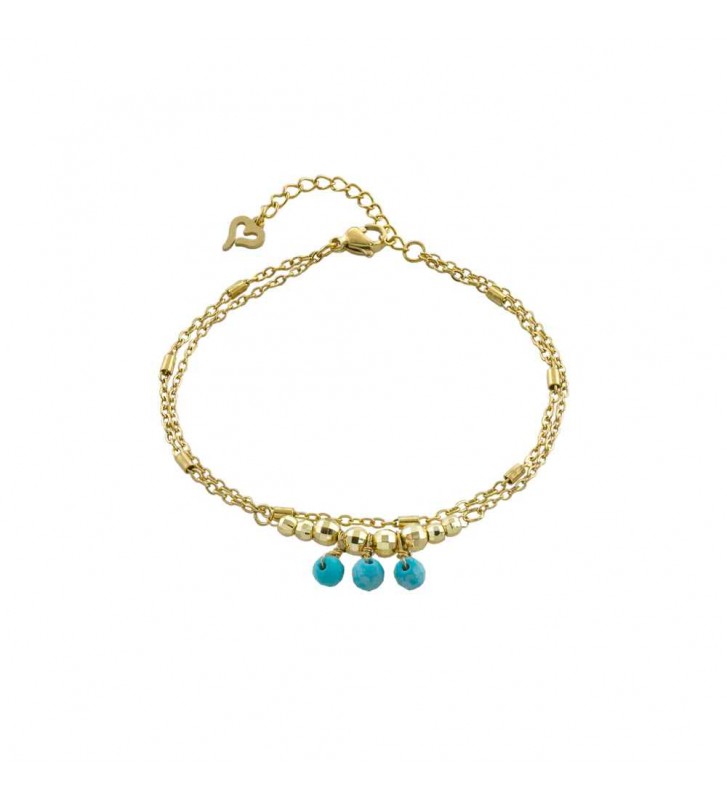 02L27-00964 Loisir Βραχιόλι Charming ατσάλινο επίχρυσο διπλό με τιρκουάζ χάντρες και σφαίρες