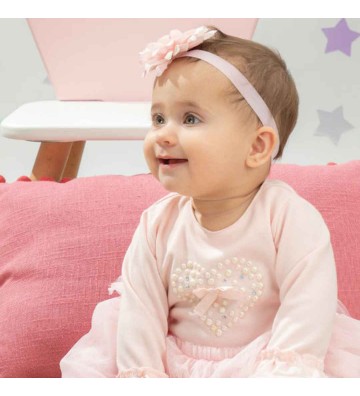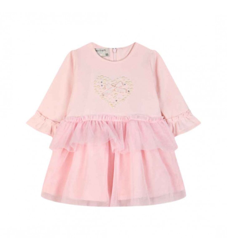 Βρεφικό φορεματάκι της εταιρείας Energiers σε χρώμα ροζ. Διαθέτει τούλινη φούστα και κεντημένη καρδούλα στο πάνω μέρος του φορέματος.