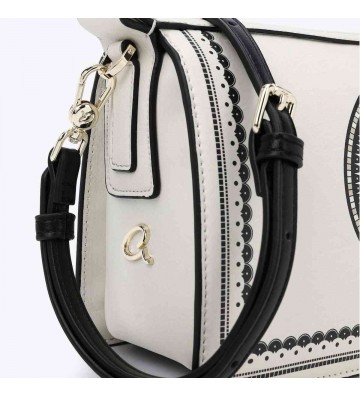 Τσάντα Cristelle ώμου σε μεσαίο μέγεθος. Κατασκευασμένη από τεχνόδερμα με ιδιαίτερο ανάγλυφo μοτίβο Axel. Διαχωρισμένη σε δύο τμήματα εσωτερικά, με επιπλέον θήκη και τσέπη με φερμουάρ για καλύτερη οργάνωση. Είναι πλήρως φοδραρισμένη και κλείνει με καπάκι και χρυσό μεταλλικό κούμπωμα σε σχήμα 'a'. Αποτελεί μία όμορφη και κομψή επιλογή που μπορεί να συνδυαστεί με καθημερινές ή και πιο επίσημες εμφανίσεις.